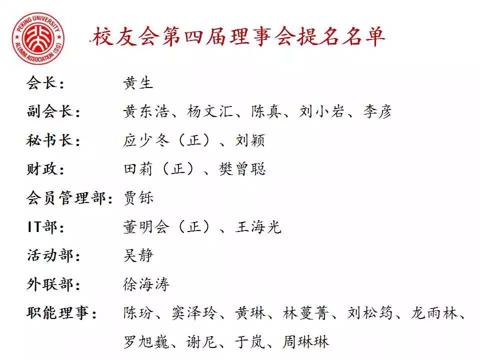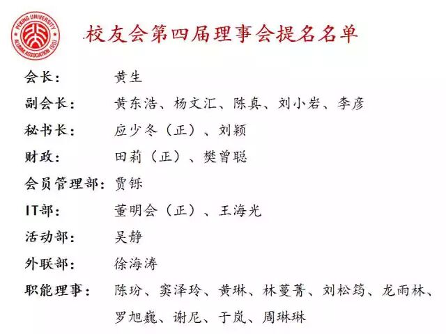 截至表决前,共有37位会员到场。大会以全票通过了此份理事会推举名单。北京大学新加坡校友会第四届理事会就此正式诞生。