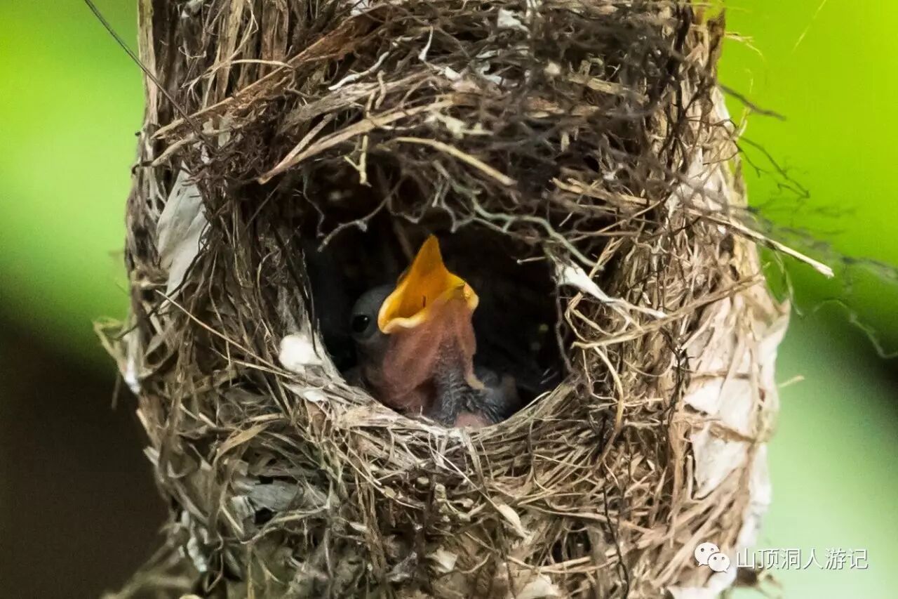 小鸟孵化出壳后,大约也就是两周多一点的时间,就可以长成离巢了。