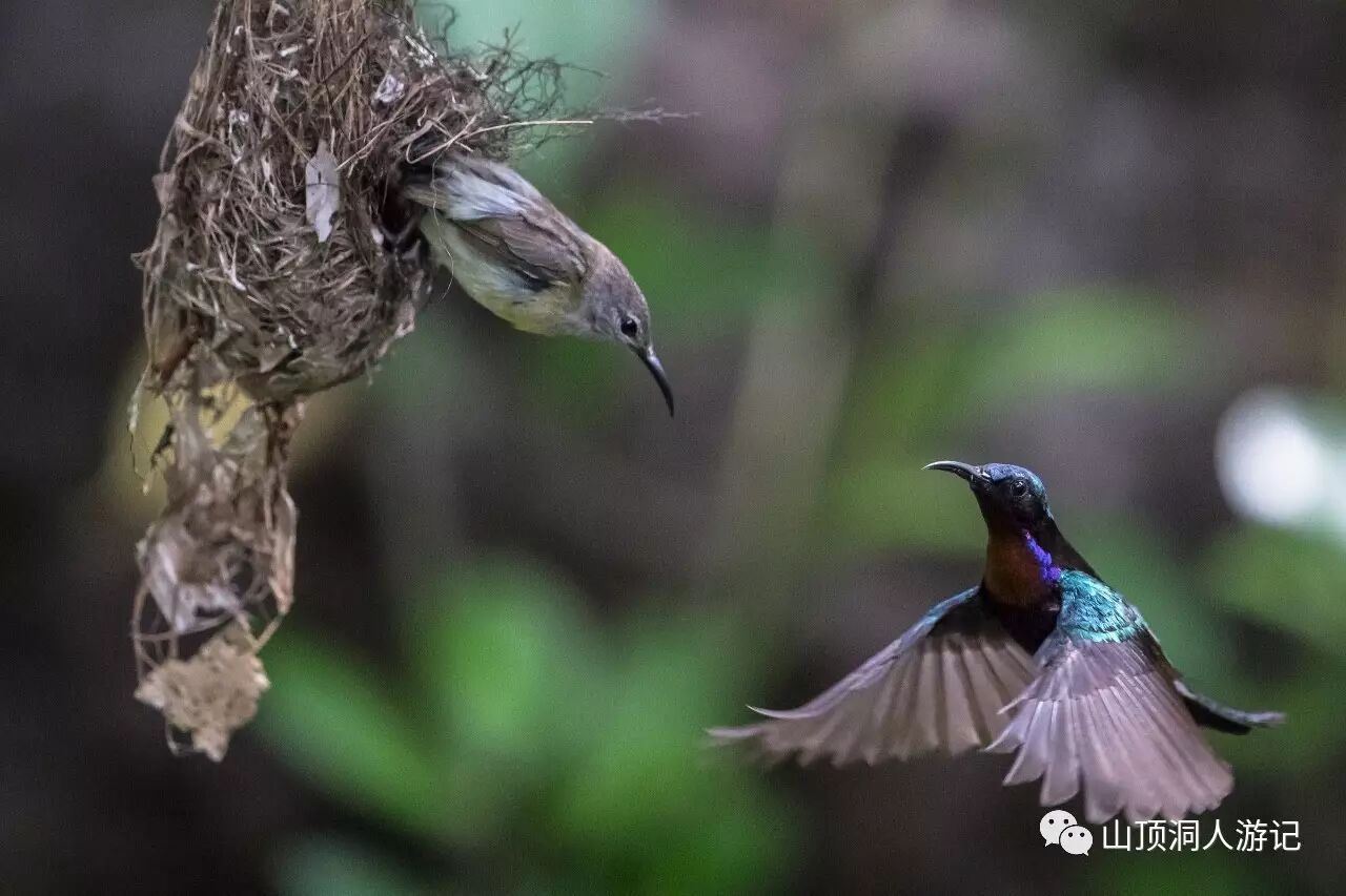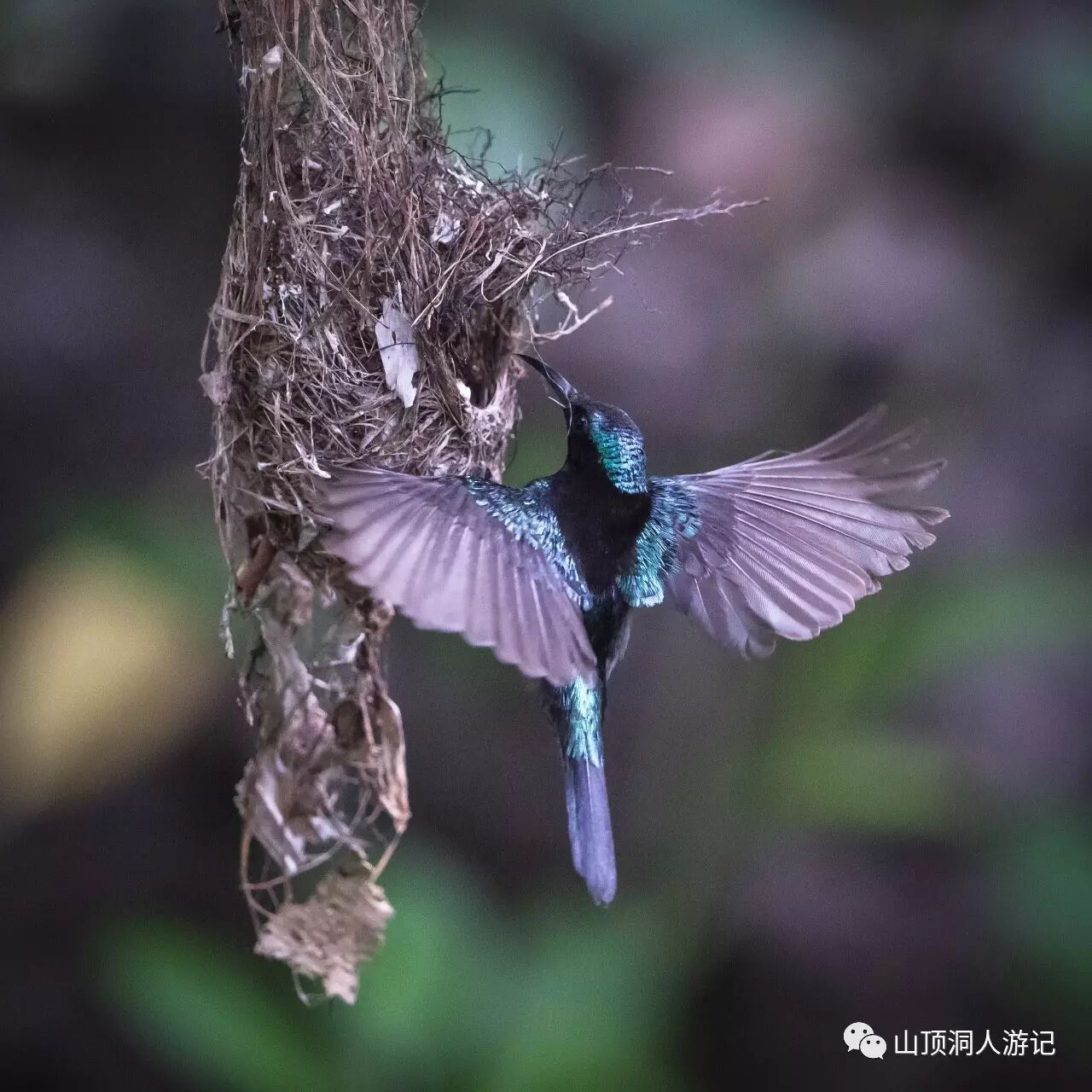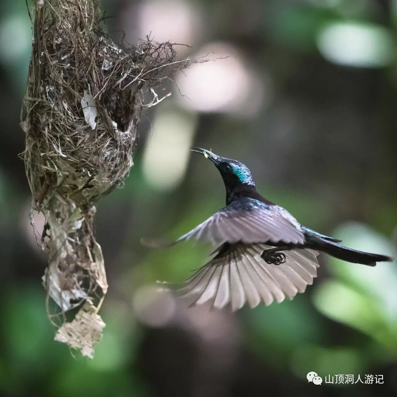 我扛着相机,留恋地在树林里转着,期望还能拍到两个孩子。他们的妈妈爸爸我又见到了几次,但没有见到他们。偶尔看到密林里有两只小鸟快速地追逐着,距离花蜜鸟夫妻不远,鸣叫声也是花蜜鸟的声音,飞得无拘无束而没有目的,充满了见到广阔新天地时的欢快和对自由的尽情享受。