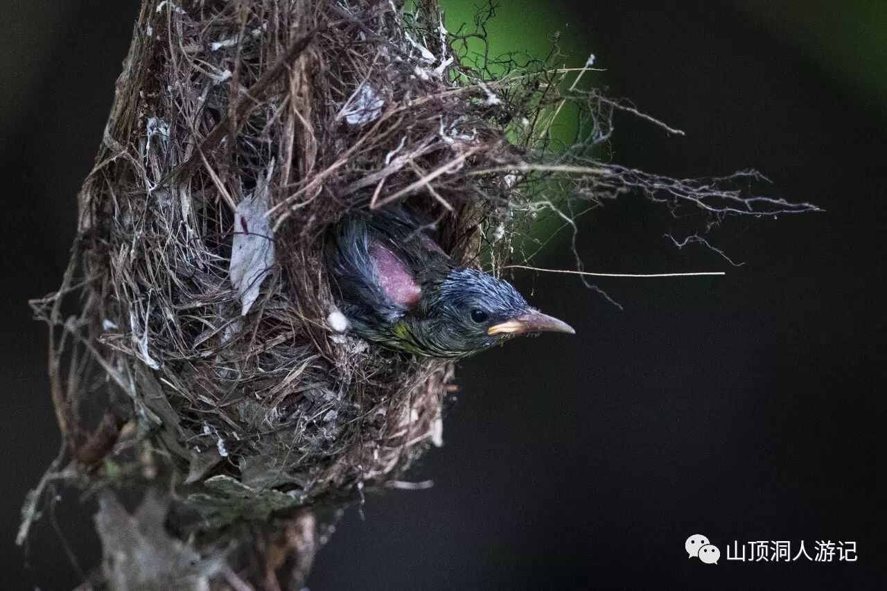 【出壳约八天的小鸟,偶尔会把身子探出窝外,毛还没长全。据我观察,这一天只有两次,都在早晨,万幸都拍到了】